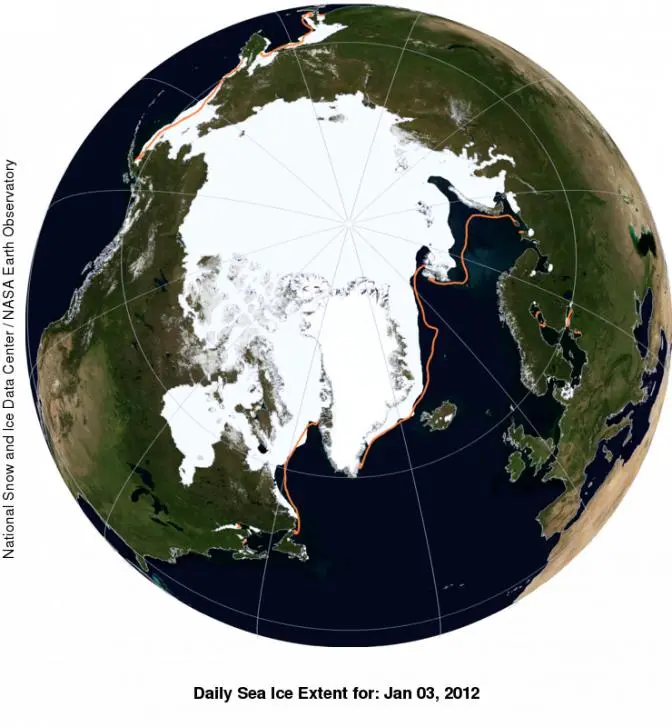 Average ice extent for November 2011 was 10.01 million square kilometers (3.86 million square miles), 1.30 million square kilometers (502,000 square miles) below the 1979 to 2000 average. This was 170,000 square kilometers (66,000 square miles) above the average for November 2006, the lowest extent recorded for that month in the satellite data record.
