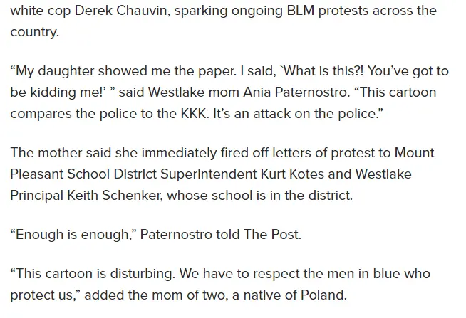 Westchester school under fire for cartoon comparing cops to KKK, slave owners