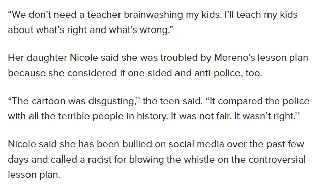 ) are angry that some Leftist aka Communist Teacher paid to Brainwash their young children into HATING THEMSELVES AND HATING AMERICA and now also it seems to be Brainwashed into thinking the Police = KKK and Slave Owners from The Slave Trade that ended more than 200 years ago.