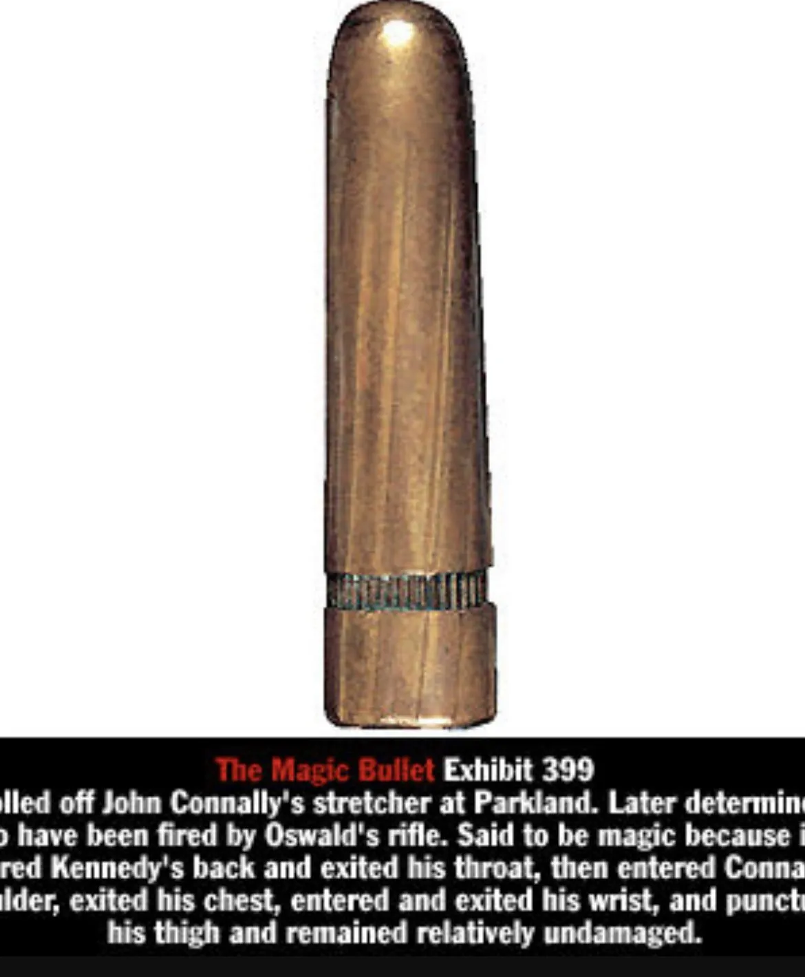 They never made any claim at all about a magic bullet. The naive fools are the ones who claim that the government described a bullet zig zagging pausing and twisting etc in mid air.