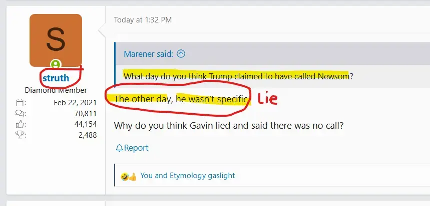 That's not the facts, it's a lie. Trump never said he called Gavin "yesterday" - Gavin however did lie when he said there was no call, not even a voicemail.Does a phone conversation have to mean that Newsom asked Trump to send in the national guard.