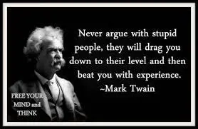 Mark Twain........ "Never argue with stupid people, they will drag you down to their level and then beat you with experience."View attachment 610759
