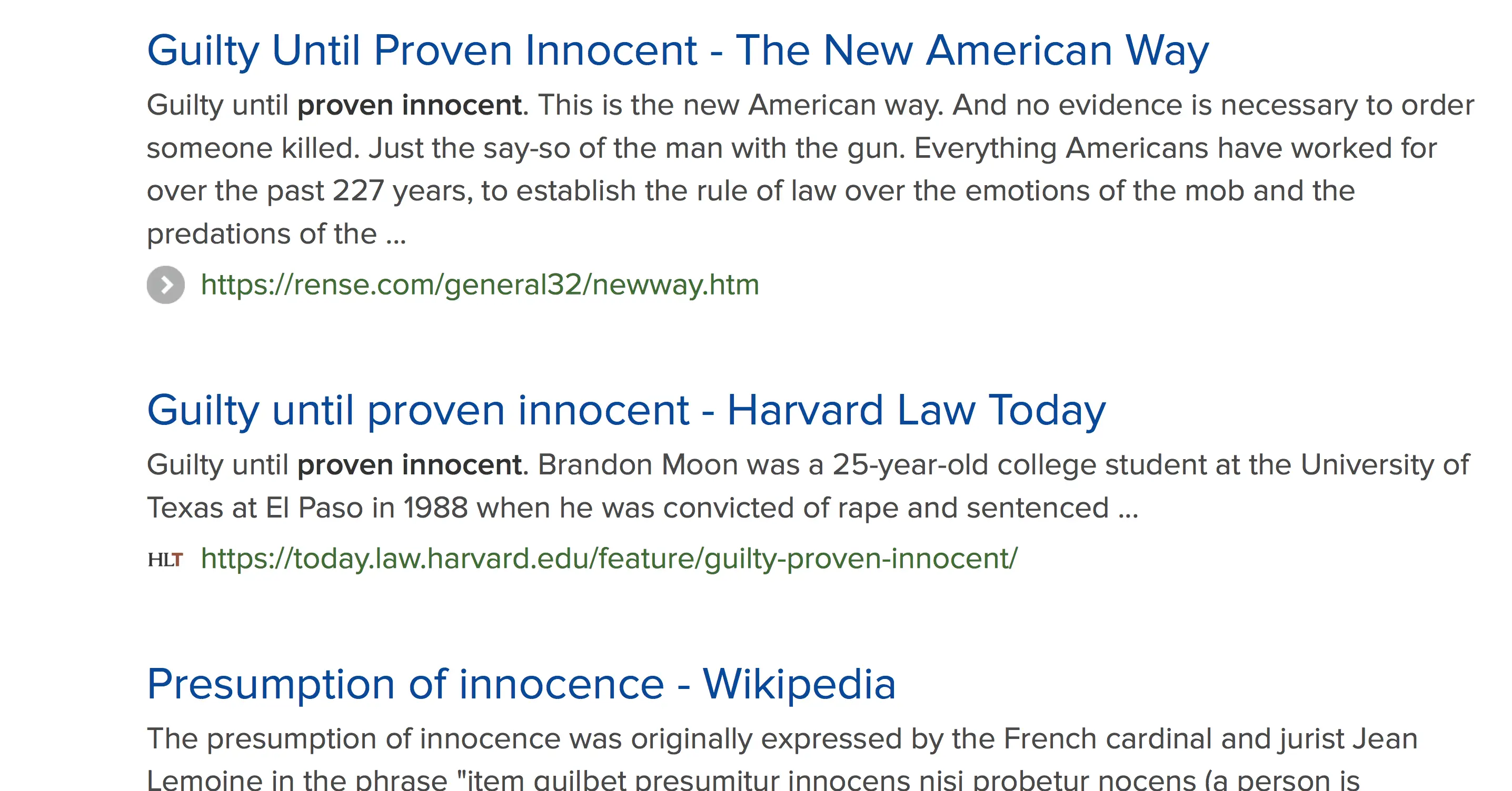 Fine...show us all the link that factually proves that the law of the land is guilty until proven innocent?