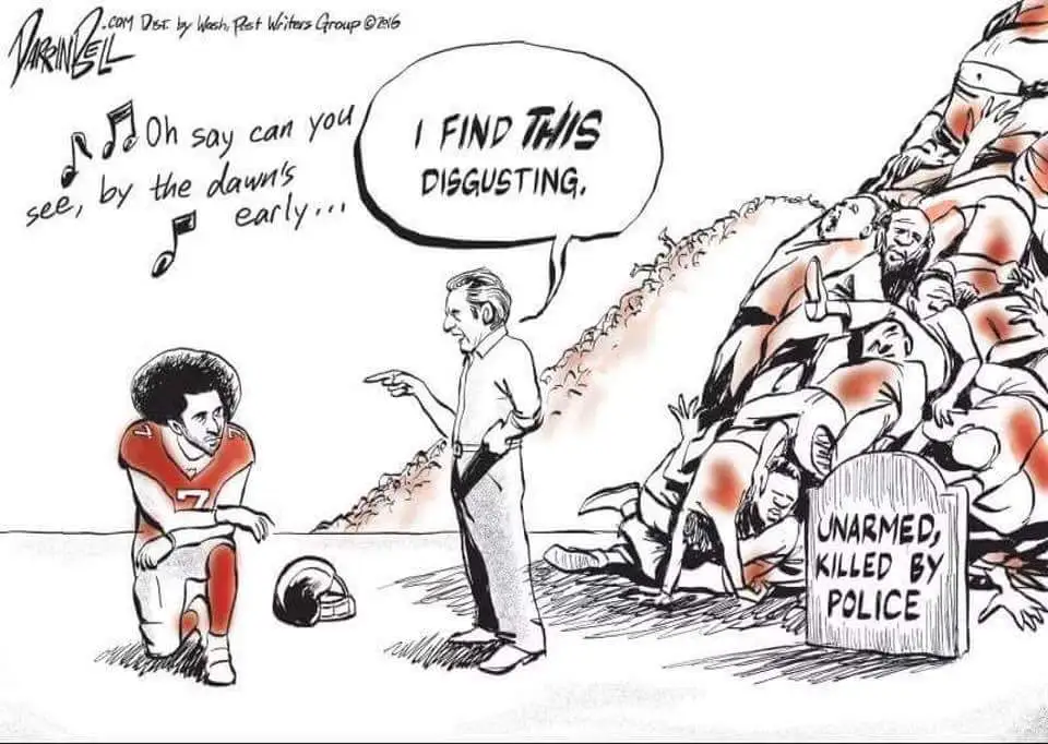 So do you stand for the anthem when it's on a screen?There is nothing "big boy" about celebrating and supporting financially, people who insult you and demonstrate they have nothing but contempt for you.