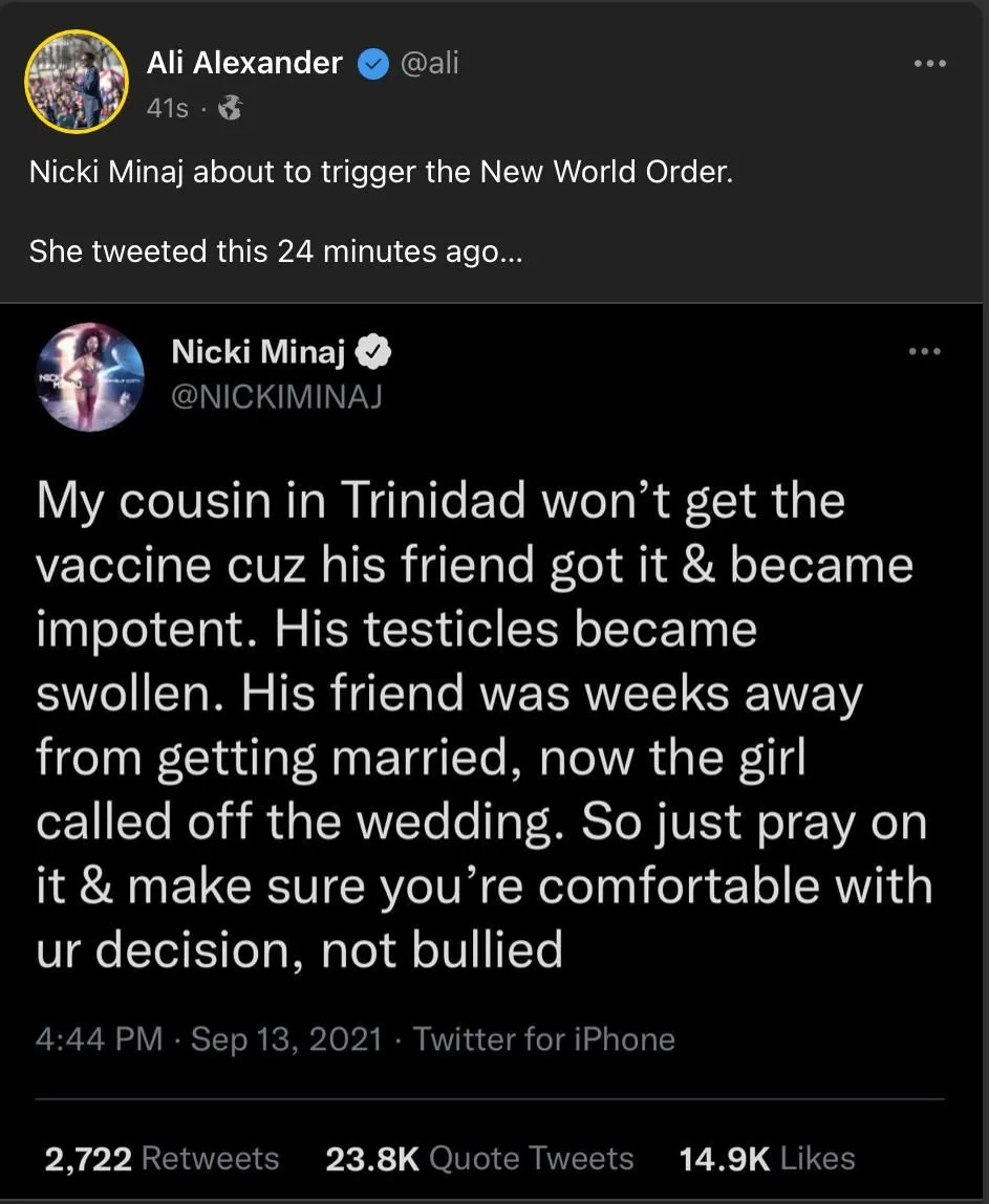 That’s what the Vax shills are saying.His friend got an STD and blamed it on the vax.