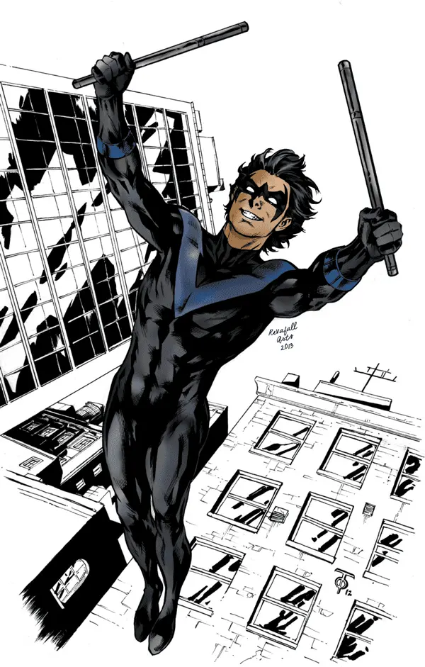 In other words, Nightwing was the 'favored son' of the crusader-world. Nightwing started his 'rule' by ridding Tijuana, Mexico once and for all of the devastating influence of the corrupt and nefarious narcotics-ring empire known as 'Black Mask.' Nightwing then secured commercial peace relations between North Korea and South Korea by managing a Samsung-related trade-council between America and Asia. Nightwing also dealt with the modern problem of mass virus-algorithm generation by homegrown and foreign terrorists threatening the security and stability of the new global cyber-network known as 'SkyNet.' Nightwing was a real smart fellow, and his strategic-thinking matched his field bravado and courage. Nightwing even personally dealt with the nefarious menace known as 'Bane' (a steroids-pumped super-terrorist threatening the sanctity of elementary schools across Gotham and New York City). Bane would kidnap children and threaten to inject them with steroids, so Nightwing drowned him in the Hudson River to appease his 'publicised daydream' about a suicide-fiasco. Nightwing was a true friend of capitalism!