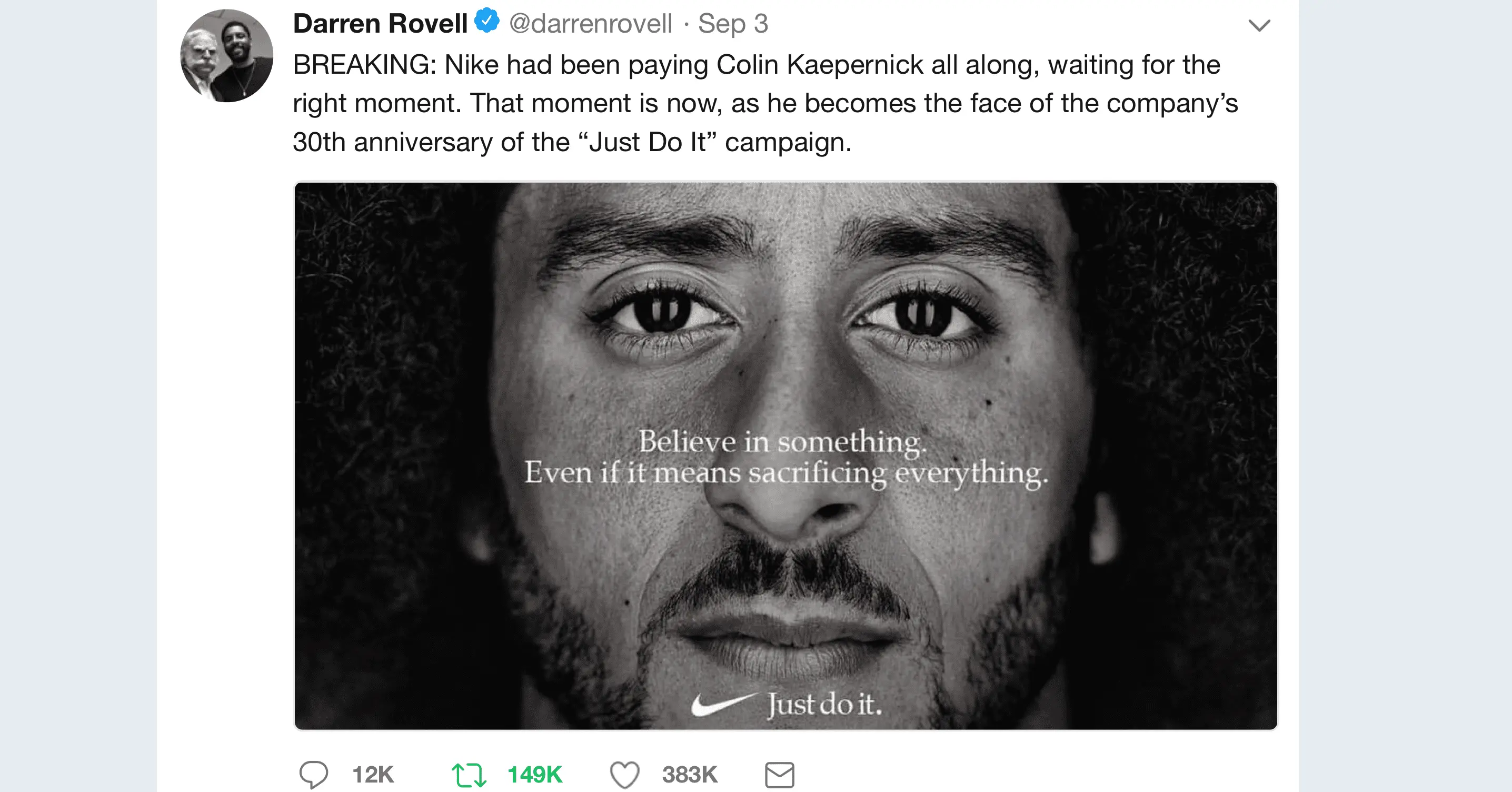 Nike just signed an 8 year contract with the NFL, do you really think they care about some moron's burning their shit on FaceBook?