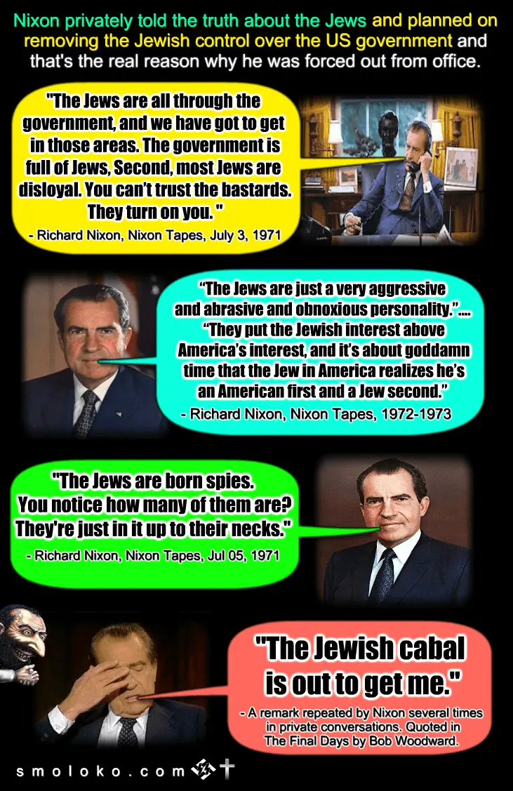 There are many other presidents on record talking about how the jews control congress and our government as well. Good thing for Nixon he did not cut off aide to Israel as JFK did or he would have suffered the same fate. Nixon got off easy only being forced out of office and lose his job.