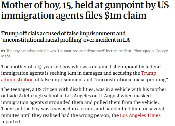 Mother of boy, 15, held at gunpoint by US immigration agents files $1m claim