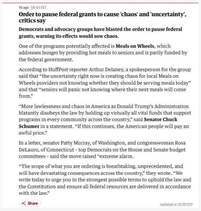 This is what trumpanzees voted for, despite years of people warning what Trump would do with Project 2025 they didn't listen, they were giddy with excirtement for Trump's promise to make America "Great" again, well, blame yourselves, you voted for this - thousands of elderly people won't be getting fed, welcome to third world USA.