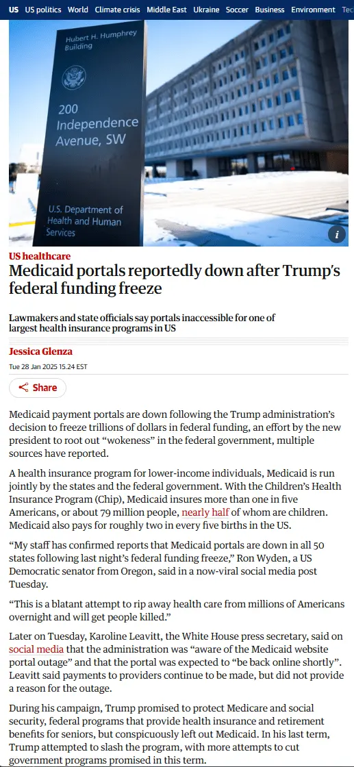 Medicaid payment portals down after Trump’s federal funding freeze
