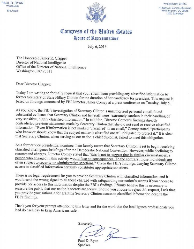 In explaining all that went on he did outline 1) Her lying; 2) Reasons for taking away her TS clearance and 3) allowing persons without security clearance to read Top Secret information, namely her attorney, Kendall.