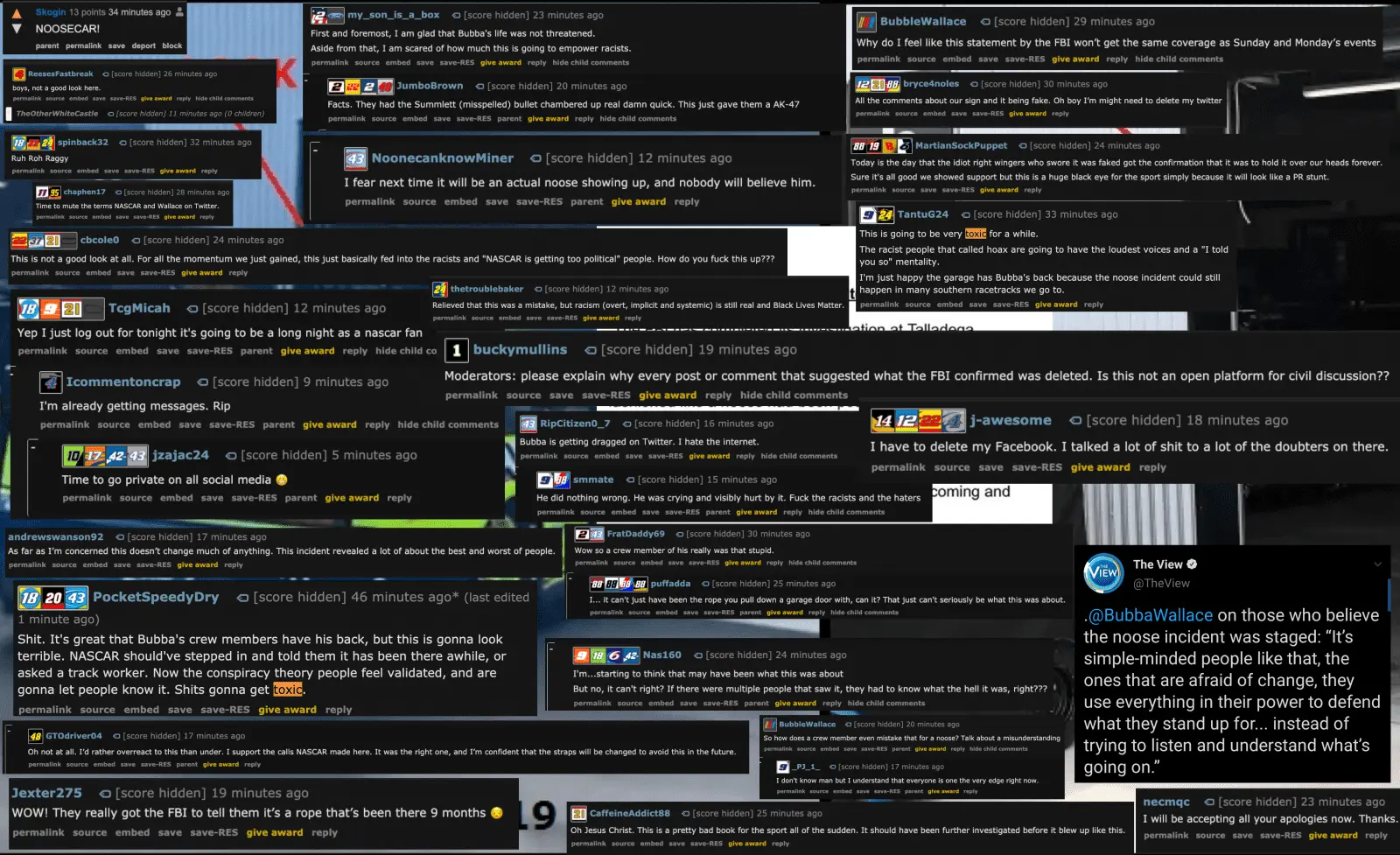 LOLOLOL. I ain't been around long here, but I have a feeling everyone is relishing a great time at your expense.Go to hell. See ya.No you fuckhead. You tell me why you say racist shit about his stance on BLM and racism and apologize.I apologize for no racist redneck racer. And especially you.Are you going to apologize that your ass got ***** punked to the board?The end is nearing for racist redneck racing.It is totally understandable NASCAR fans from the South would be peeved that a driver is a BLM fucktard judging them and dictating to them what the degree to which they can exercise their First Amendment rights in regards to the Confederate flag, which is a very cool flag. But what employee would risk a pretty easy paycheck for something that is better stated by fans not showing up to watch the races if they ban freedom of speech? Also, if it actually was not the BLM fucktard, why would the BLM fucktard immediately go public, thus making it a success for the alleged individual who really did it?