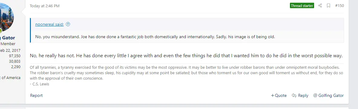 I do not like Trump any more or less than I do Biden. It is boring that you are just one more partisan that thinks everyone that does not support your guy is automatically on the other side.