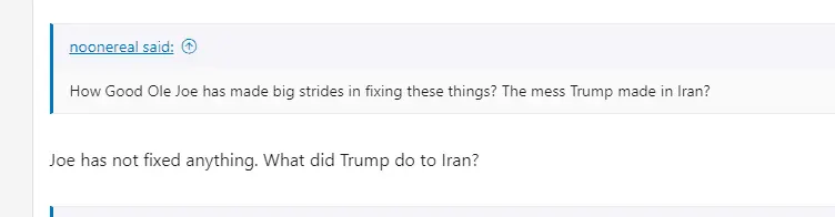 Joe has not fixed anything. What did Trump do to Iran?