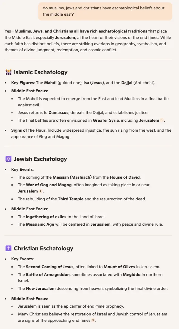 How does that differ from Christian or Jewish eschatology? Some Christians expect a time of chaos and violence too, but you don't seem bothered by those, you just hate Persians because they are opposed to Israeli neo-Nazism as you too should be, you're a very silly girl.