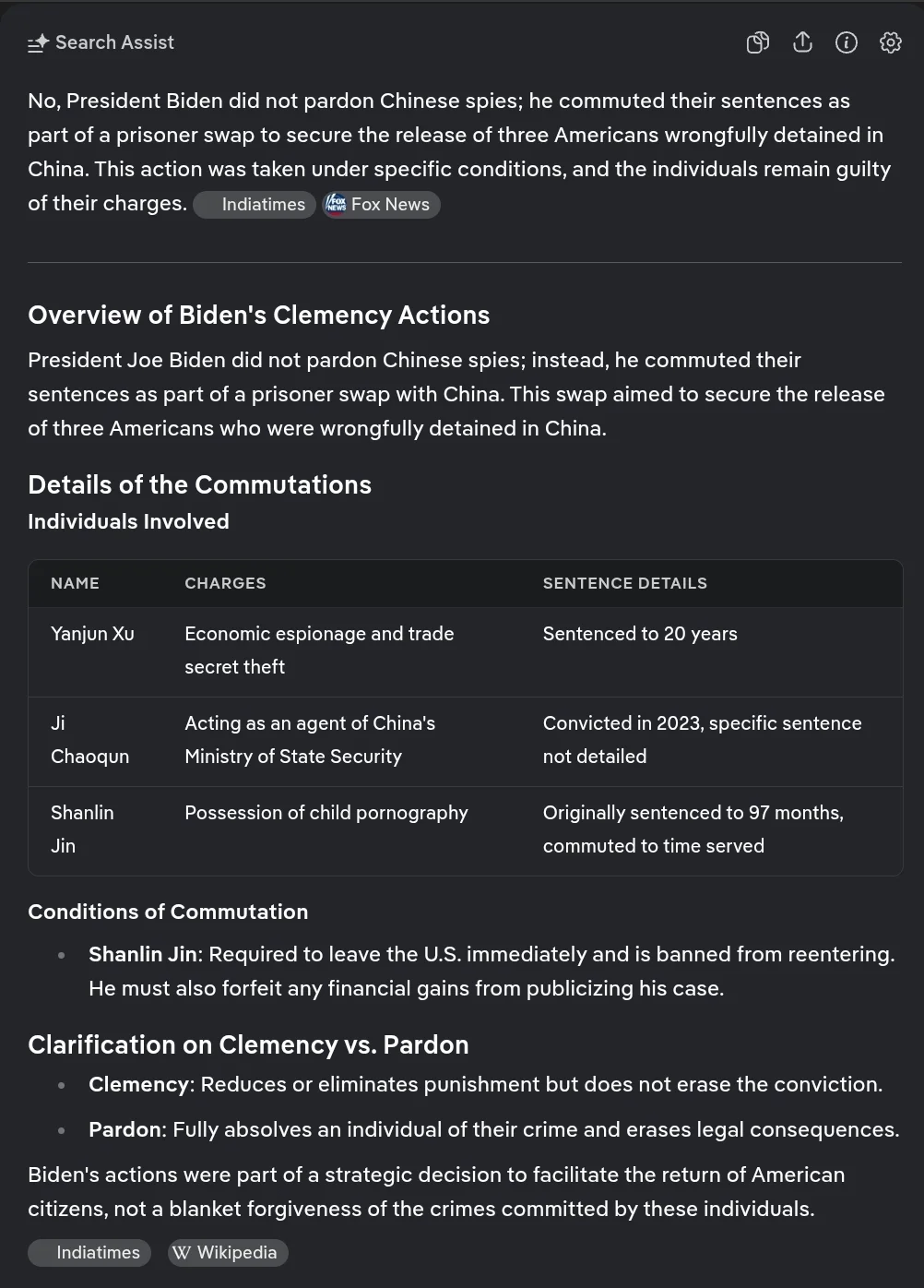 Name the felons that Biden pardoned who were still serving their sentences.