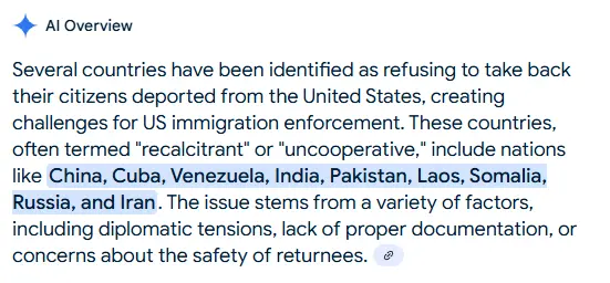 The exact countries that AI says is currently refusing to accept its immigrants back!