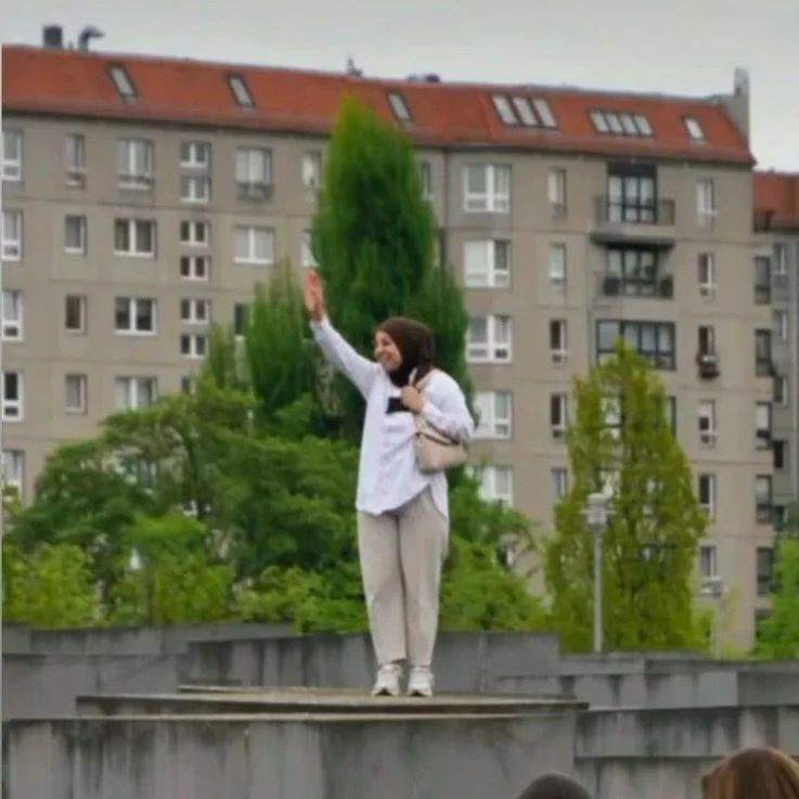Today, on Friday the 18th of April at 1:58 PM, at Berlin’s Holocaust Memorial, a woman did a Nazi salute and jumped—laughing—from one memorial stone to the next.