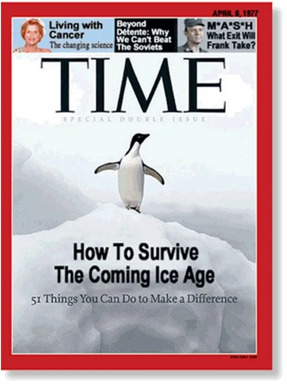 Time’s website and looked through all of the covers from the 1970s. I was shocked (shocked!) to find not a single cover with the promise of an in-depth, special report on the Coming Ice Age.