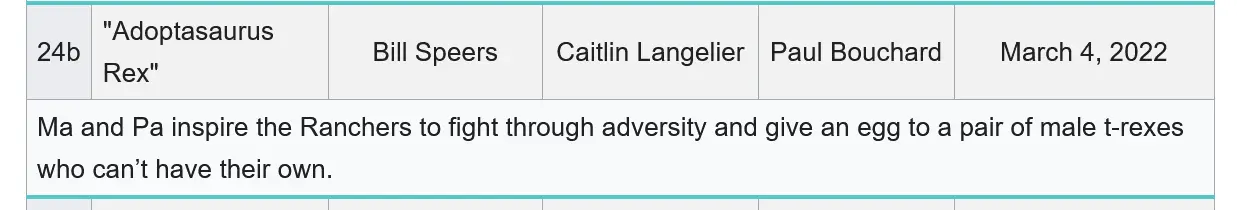 Wow. Thanks for the name, as you can imagine, I know very little about modern programming for children and do not take Disney. I think I Found it on an episode list for the series in Wikipeadia. That is a sick thing to be putting out to children, often left with TV as a constant on baby sitter. Here it is in the episode list, I think:It's called the Dino Ranch. I just Googled it myself.
