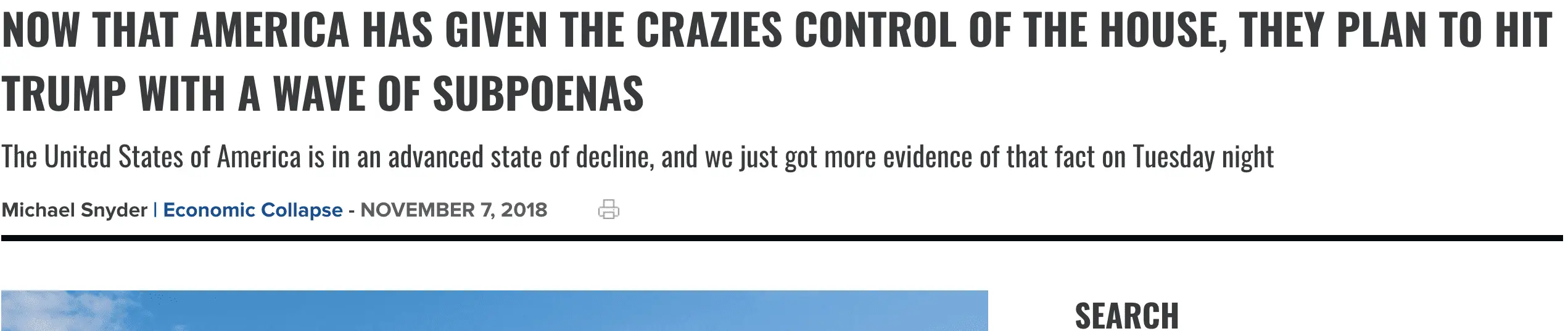 On November 6th, the American people gave the keys to the U.S. House of Representatives to the Democrats, and that means that the crazies will soon be unleashed on Capitol Hill. They won’t be able to get much legislation pushed through because Republicans still control the Senate and Donald Trump is still in the White House, but they will be able to cause all sorts of chaos with their investigative powers. If you thought that things were bad the last two years, just wait, because you haven’t seen anything yet. Top Democrats are already talking about hitting Trump with a huge wave of subpoenas, and the White House is bracing for the worst. It is going to be a time of bitter partisan wrangling in Washington, and meanwhile the nation as a whole is going to continue to fall apart.