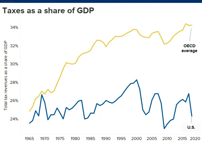 Only Hungary and Israel came close to the U.S.′ 2.5% tax-to-GDP ratio drop, at 1.6% and 1.4%, respectively.