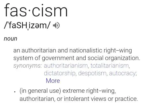 At Right Neo-Fascism: hand in hand government and business cooperation, anti-worker, uber nationalistic, xenophobic, racialistic, nativistic and anti democratic institutions and electoral procedures.