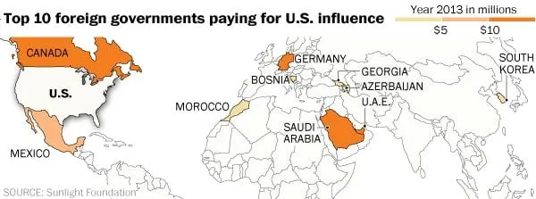 The United Arab Emirates spent a whopping $14.2 million to influence Americans, making contacts, among many others, with columnists and reporters to discuss “illicit finance issues.” Those conversations likely focused on terrorist financing and Iran sanctions, two issues that punctuated a visit Deputy Secretary of Treasury David Cohen made to the UAE early last year. Foreign lobbying disclosures by law are much more specific than domestic ones, requiring nations to say who they contacted, when and why. For example, UAE reached out to The Washington Post’s conservative opinion blogger Jennifer Rubin in December 2013 regarding illicit finance.