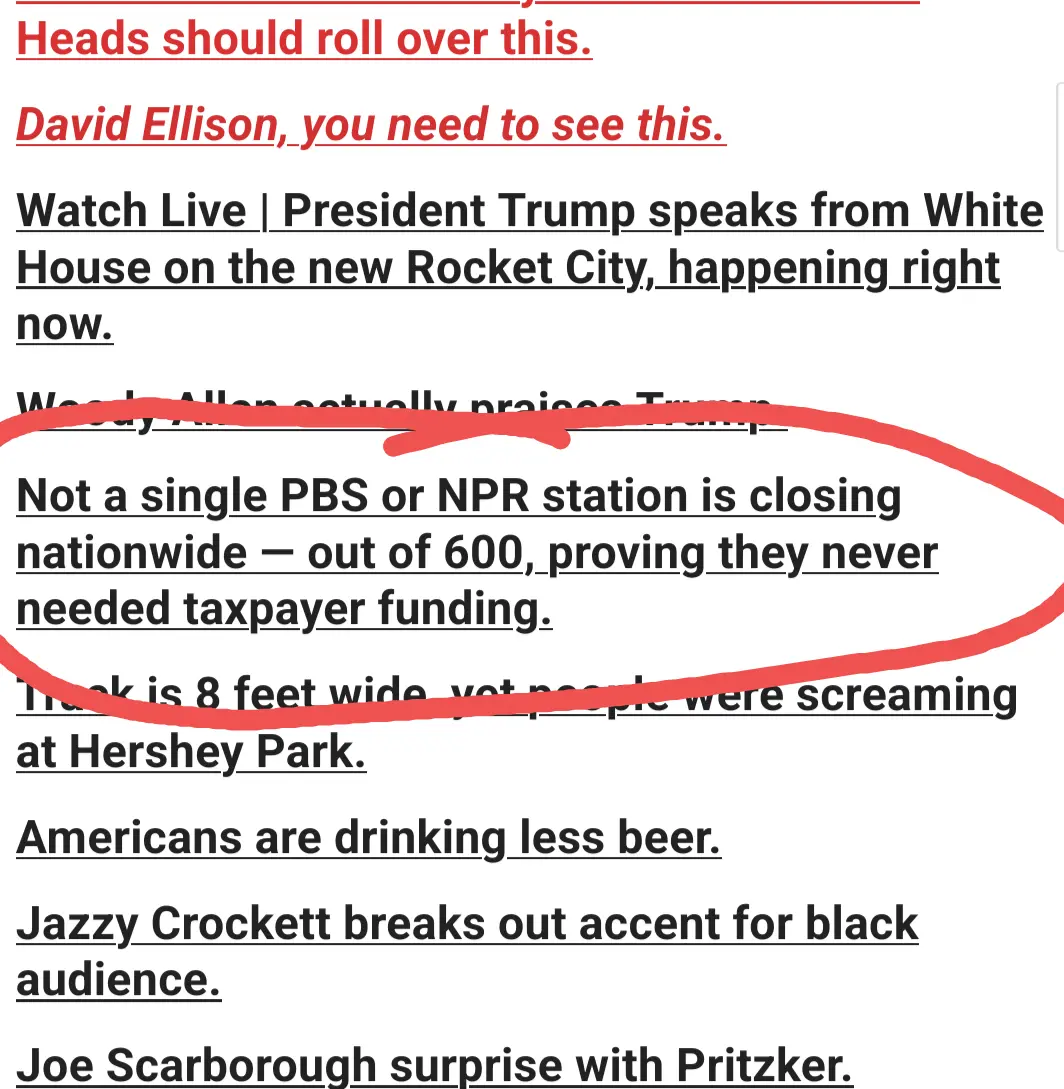 First it is mostly PBS with issues not necessarily NPR. It is rural stations that get funding to stay in business when their customers don’t have enough money and their populations are too small. It’s broke ass red state areas that are going to see the closures. Alaska has 6 stations only operating because of federal funding for example.