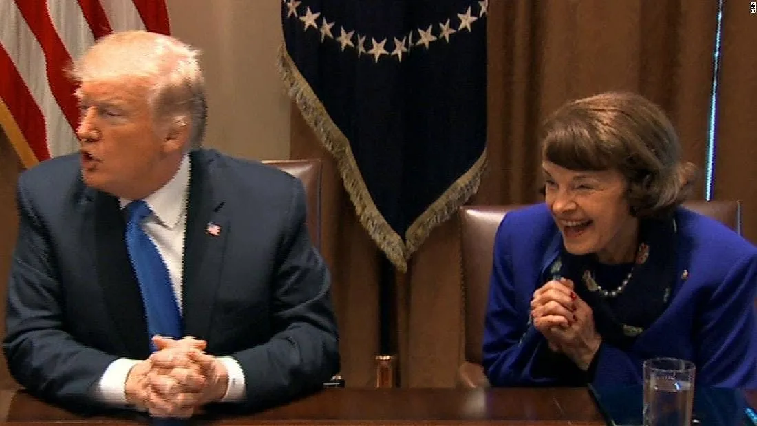 Actually, she was just jollying him along, flattering his ego, pretending to believe him. Feinstein remembers all too well the results of the DACA meeting and how the president reneged on his promise to sign any clean bill put in front of him.