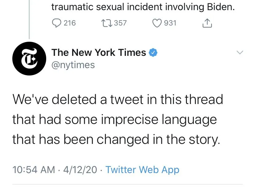 DOTR Gold Member Joined Oct 24, 2016 Messages 14,270 Reaction score 3,537 Points 290 Apr 12, 2020 #1 Even they can’t deny what we watch him do to women on camera. But Biden must be protected so they have simply defined it away...a skill all good leftists excel at.