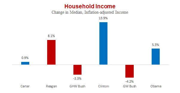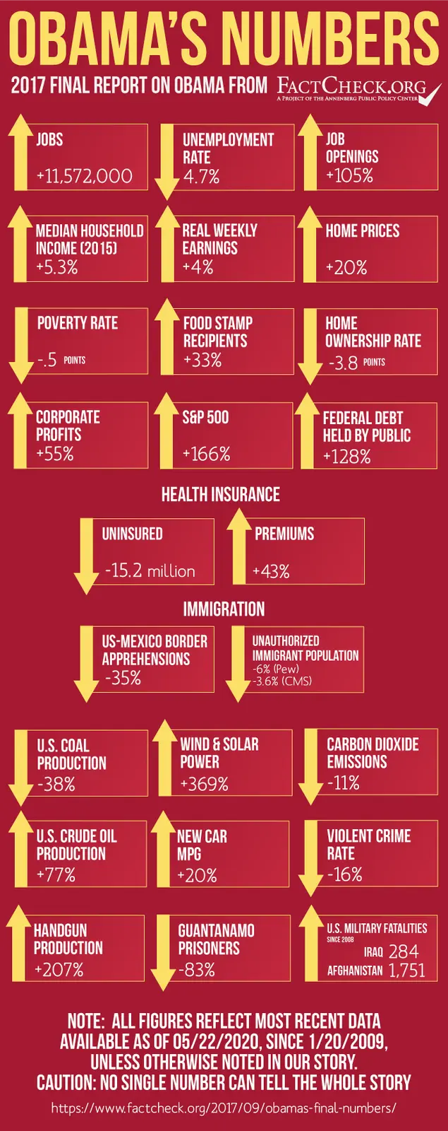 Statistical indicators of President Obama's eight years in office.