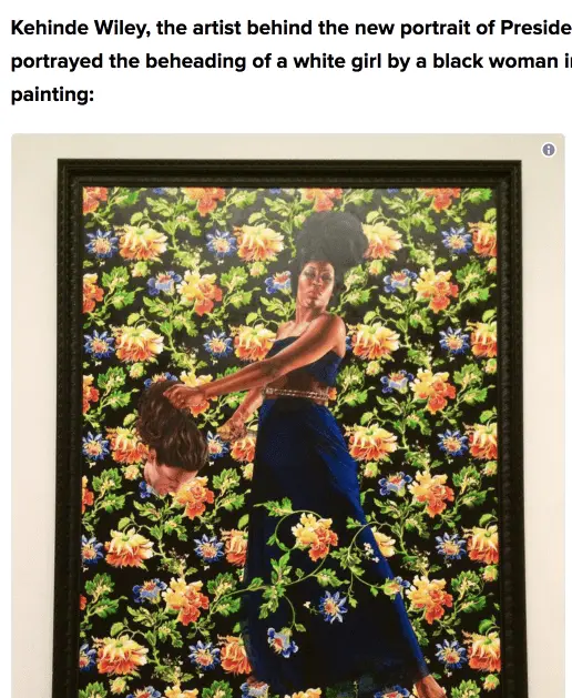 Kehinde Wiley, the artist behind the new portrait of President Obama, portrayed the beheading of a white girl by a black woman in a 2012 painting: