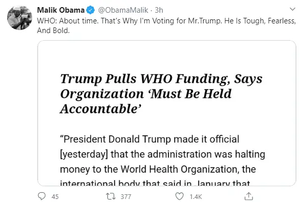 This is by far the more interesting endorsement... Obama's brother? May as well have told Oscar the Grouch endorsed Trump...