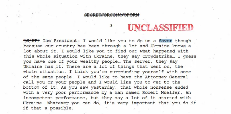 TRUMP: I would like you to do us a favour though because our country has been through a lot and Ukraine knows a lot about it. I would like you to find out what happened with this whole situation with Ukraine, they say Crowdstrike ... I guess you have one of your wealthy people ... The server, they say Ukraine has it. There are a lot of things that went on, the whole situation. I think you are surrounding yourself with some of the same people.