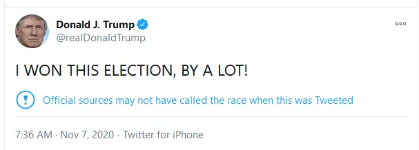 The fact remains that he's throwing a Twitter temper tantrum declaring himself the winner. And you, like every other brainwashed Trump supporter, see nothing wrong with that.