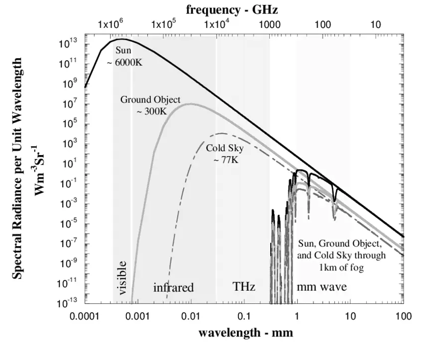 The SB equation will provide us with the spectrum of an object based on its temperature and an emissivity constant for each sort of material. For a "room temperature" object, as you can see in the diagram above, the bulk of thermal radiation is in the infrared (IR) band.. So the energy that came in from the sun in the visible band, leaves via the infrared band.