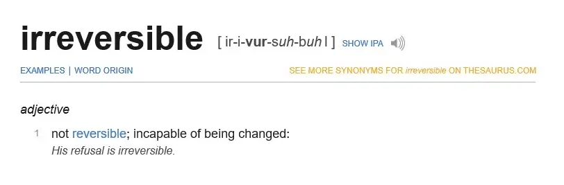So you don’t do definitions? The word is irreversible, it will answer your question