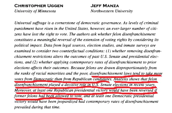 Do you even understand why voting rights are taken away from felons in the first place? It's an old (largely outdated) principle that equates felonies with dishonesty, itself being rooted in the vision of government being divinely established to execute God's will. Serious