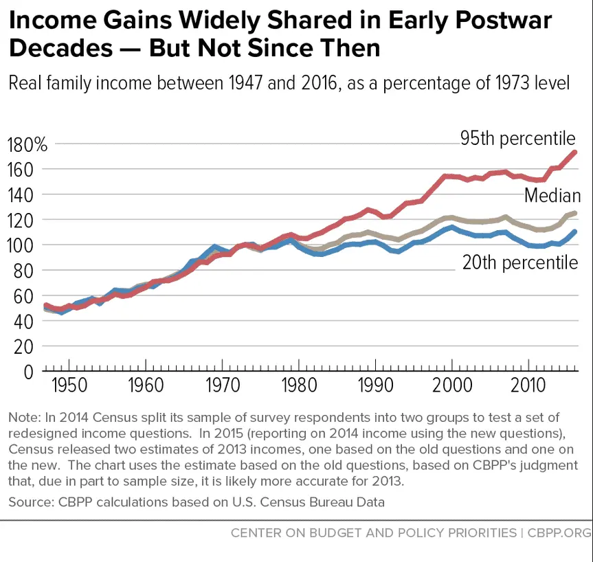 You might want to look at the fed taxes more closely , for instance the tax laws that are written and almost totally given to the wealthy , making money they receive non taxable or at a better rate. Taxable rates are bracketed to start way higher then in the past , which makes income taxes dropping considerably over time , not increasing. Real tax rates are totally different then federal tax rates on their income bracket charts.Remember, our Fiat Currency removed the last thread tied to Gold in 1971. The Social Programs were signed into law that greatly expanded them in the mid 1960's. Social Security and Medicare have expanded massively as the oldest generation and the Boomers now are retiring at 3 million people a year. Taxes have increased in huge numbers not just with the Federal level but even more at the state, local, city and regional levels. There is an affect. We had the best model we could before this. Even though we had social issues and still have some. Perhaps we could have worked within that framework a bit more.