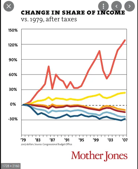 GEE WHAT HAPPENED IN 81 First chart shows the distorbution of wealth after ass ole Reagan and worse yet the second chart show the disaster tax laws were for everyone except the golden few. The tax law for the wealthy allowed them to keep it all , the tax law for everyone else was a disaster, their real income dropping upto 30% just to 07 and it dropped faster after that. **** Reagan everything he did all your bullshit numbers all went to the top.