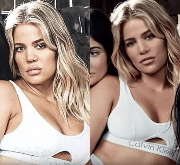 And here is another sister Khloe. If she had all those plastic surgeries and still have to photo shop her face, what's the point?
