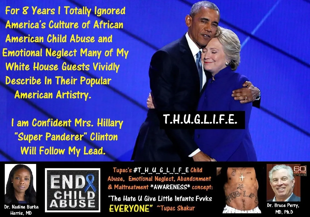 I am referring to a Culture of Child Abuse, Emotional Neglect, Abandonment and Maltreatment responsible for popular American urban story-TRUTH-tellers and 'Childhood Trauma' (#ACEs) victims the late Tupac Shakur (born 1971) and Mr. Barack "My Brother's Keeper" Obama White House guest and friend Kendrick Lamar (born 1987) vividly describing in their American art and interviews the