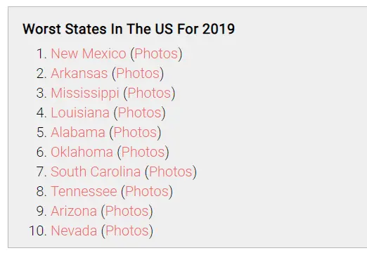 Anyone notice which states seem to regularly pop up in the worst-of stats?