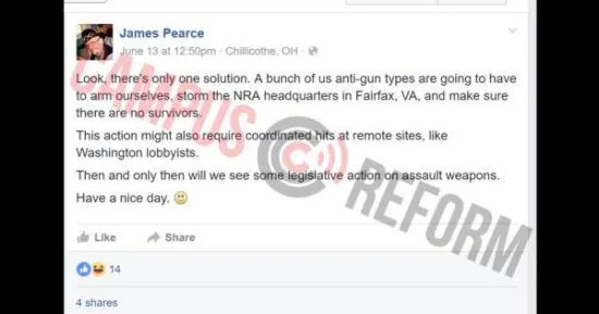 That guy would shit his pants if he even saw a gun close upWhere did he get his gun? Seems like he should not be permitted to pass a background check after his statement.Ten bucks said he doesn't lead any charge against NRA headquarters, he's yet another loudmouth leftist with no spine