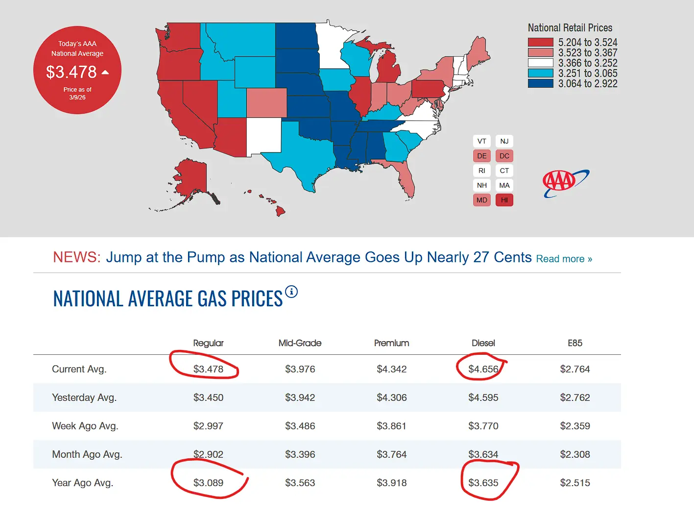 I posted all of 2024 and 2025 saying the same thing across both presidents. I didnt blame or credit any presidential policy for prices, I correctly pointed to OPEC supply variances driving world prices - the truth. For the first time in many years we CAN tie gas prices to presidential policy: War. The Iranian War or Military Action, is Trump policy and IS impacting prices.Gasoline prices suddenly matter to leftwingers. You weren't posting "facts" about low oil prices for the past year. Why not?