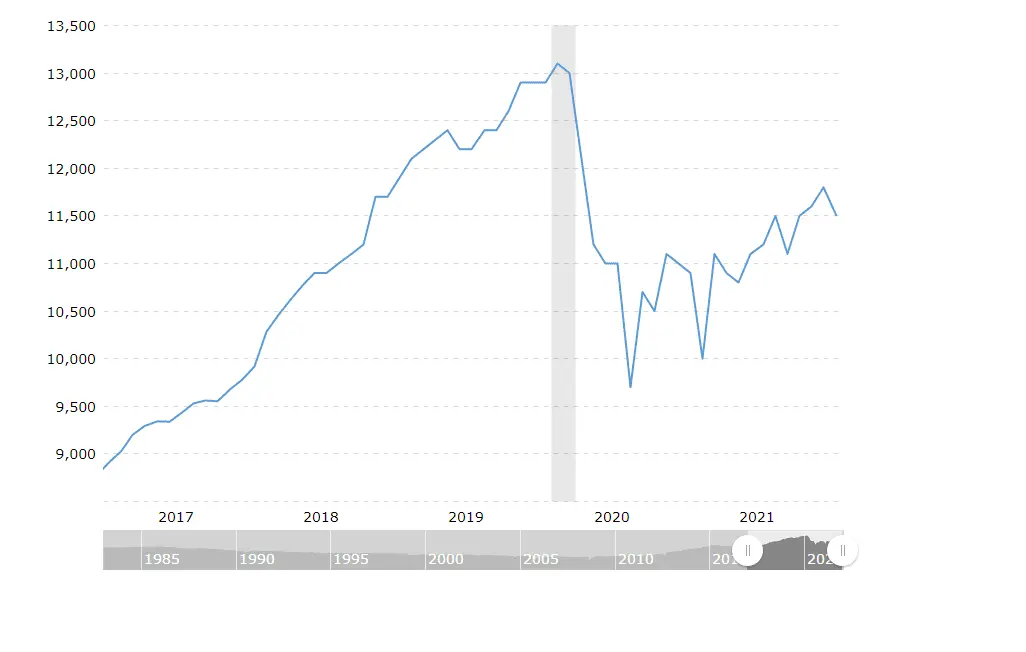 Interactive historical chart showing the monthly level of U.S. crude oil production back to 1983 from the US Energy Information Adminstration (EIA). Values shown are in thousands of barrels produced per day.www.macrotrends.net