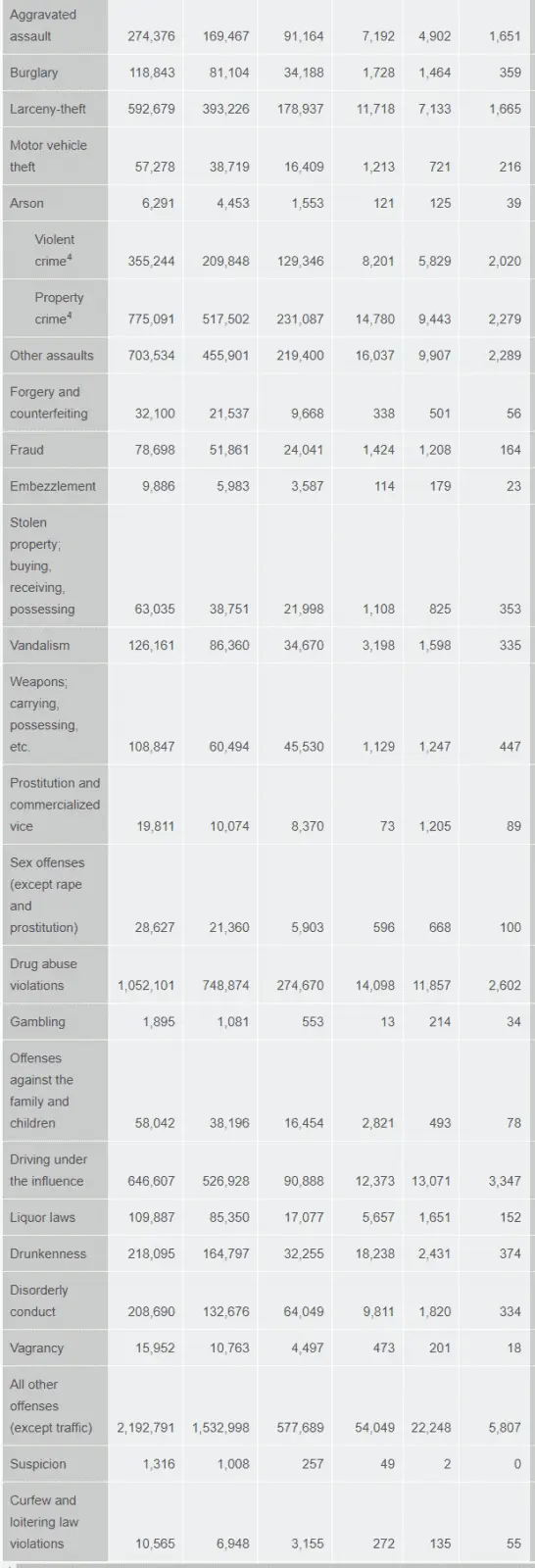 Your logic falls down everywhere on it's first point when you try to say 95 blacks in every 100 aren't committing crime & 97 whites in every 100 aren't committing crime because you are taking the small value of 5 and 3 in the first instance per 100 folk, but ignoring the fact that them 2 of a difference is multiplied literally hundreds of millions of times when you take the whole population of the USA into account and it gives you a vast metric and the true picture.