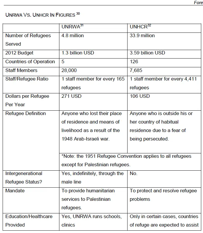 EXPLODING THE MYTHS: UNRWA, UNHCR AND THE PALESTINE REFUGEES] [See the UNRWA vs UNHCR Comparison Chart]